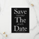 Med modern och trendig sparar du datumet med fet kalligrafi brev i svartvitt. Anpassa den med framtida brud och brudgumms namn, datum och plats. Lägg till valfritt färg i baksidan genom att klicka på knappen för att redigera designen.