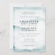 Inbjudan till elegant bröllop med en tealblått vattenfärgslandskap med fuktiga rökiga berg.