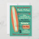 Ett vintage surfplansch omarbetat med en canvasliknande textur gör denna inbjudan perfekt för en killarnas svensexa weekendutflykt. Inbjudan har en grupp killar som paddlar med sina surfbrädor på framsidan och baksidan har en surfbräda med all festinformation. Vänligen kontakta oss om du behöver någon anpassad design eller ändringar i denna inbjudan.