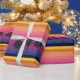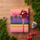 Svensfärgade havsolnedgång med silhuetter av presentpapper