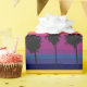 Svensfärgat havsolnedgång med pappra silhuetter av handflatan träd inslagning. Roligt till stranden party, firande!