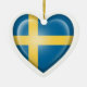 Svensk hjärtaflagga på vit julgransprydnad keramik