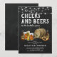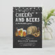 Rustika inbjudningskort för svensexa med en bakgrundseffekt i svart tavla-stil, ett urval av vattenfärgade öl, kringla och ett ölfat, slingrande ljus och en modern "Cheers and Beers"-mall som är lätt att anpassa.