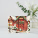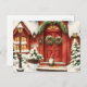 En charmig skandinavisk julillustration med en mysig vinterscen. En söt tomte under snöfallet.