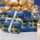 Den blå och gult svenska flagga blåser i vinden med blå himmel bakgrund.