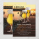 Inbjudan till bachelorfest med en solnedgång vid en sjö med två ölglas på en brygga. På baksidan kan du välja mellan en mörk trämiljö eller en större bild på glasen. Vacker för en utomhusfest, pubcrawl eller grillfest.