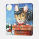 "Dickens jul Mice No. 6 - "The Skorsten Sweep" Watercolor Art Ceramic Ornament by Artist Jean Weiner "Dickens jul Mice No. 6 - "The Skorsten Sweep" har en vit mus från den klassiska sagan A jul Sång. Den här musen är en skorsten svepning. Han är täckt av sot från den sista skorsten han rengjorde. Han bär en röd näsduk runt nacke. Bykyrkan och bostäderna kan ses nedan, täckta av en ny filt från snö. Det finns en fullt och ljusa stjärnor på natten himlar. Säkert att glädja dig åt Dickens jul eller mus älskare! God jul! Den här produkten var designad med hjälp av vattenfärgsartisten Jean Weiners ursprungliga vattenfärgsmålning, "Dickens jul Mice No. 6 - The Skorsten Sweep". Alla höger för återgivning är reserverade.