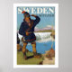 Vintage resor Poster för Sverige och marknadsför utomhus äventyr i Lappland.