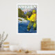 Vintage resor poster för Sverige och visar en fiskare utomhus.