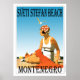 En retro poster som aldrig varit tidigare. En rekreation av en gammal poster. Sveti Stefan Beach vintage stil från konsthändelsens epok. Ljusa färger med en kvinna på stranden sol som badade med en röd filt och ett plapper stil polka-pricklock. Endast av Zazzle.com/Retro_Art Store.