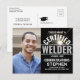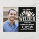 Dela glädjen av en svetsarskolas examen och inbjuda familj och vänner att fira med personliga ”Certifierad svetsare”-fotokort. Både bilden och all text i denna mall är enkla att anpassa med valfri information, inklusive examenens namn, årskurs, inbjudan till fest, svetsarcertifiering, examensinstitution, favoritcitat eller framtidsplaner. Den svart-vita designen har en svetsbrännare med gnistor, en falsk rostfri ”mortelbräda”, modern fet typsnitt och ett foto som du väljer. Observera att silverfärgen på examenshatten är tryckt, inte metallfolie. Dessa snygga examensannonser är ett elegant sätt att dela en speciell dag med familj och vänner. Grattis till examen!