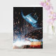 Detta är ett foto av en svetsare omgiven av gnistor.