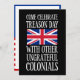 Kom och fira Svikets dag med andra otacksamma kolonister rolig inbjudan med Storbritanniens flagga. En rolig inbjudan till 4:e juli och självständighetsdagen. Brittisk humor för en 4:e juli-fest. Storbritanniens flagga och amerikanska färger på baksidan.