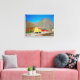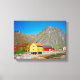 Kustscen med berg och färgade trähus i Svolvaer, Lofoten Islands, Norge