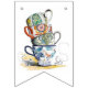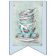Fantastisk samling av tekopp, såser, tekannor, smörgåsställ, muffinsar och makaroner på den svällande party-bunten.
