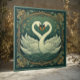 Swan Couple Art Nouveau Forest Green Wall Accent Kakelplatta
