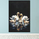 Swan Family on Black Lake Artwork Canvastryck
