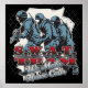 Tre fullt beväpnade S.W.A.T.-medlemmar är redo att vidta åtgärder! SWAT TEAM Vi gör hussamtal, inte bara tillför lite humor till tillsatta lagar utan pekar också på elitpolisens speciella vapen och taktikenhetens beredskap. Underbara SWAT-poster för SWAT-medlemmar och alla som befordrar tillsatta lagar!