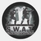 Två tungt beväpnade S.W.A.T.-teammedlemmar med sköldar får redo för strid! Stora S.W.A.T.-texter och mindre speciella vapen och taktiktext nedan. Underbart SWAT-team och tillsatta lagar-gåvor!