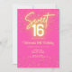 Sweet 16 Hot Pink Neon Glow Gold Glitter Birthday Inbjudningar