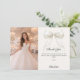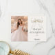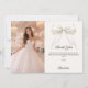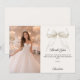 Add a vertical size photo. A soft ivory colored background, a bow with pearls and a golden cross as decor. Personalize and add a name and thank you note.