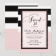 Sweet 16 Modern Rosa Svart & Vit Ränder Party Inbjudningar