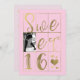 SWEET 16 SEXTON Guld & Rosa Hjärtan Foto Inbjudningar