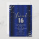 SWEET 16 Sexton Royal Blå Silver Konfetti Hörnet Inbjudningar.