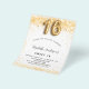 För en elegant Sweet 16, 16-års födelsedagsfest. En chic vit bakgrund. Dekorerad med falskt guldglitter, gnistrar. Anpassa och lägg till ett namn, ålder och festdetaljer. Namnet skrivs med en handskriven stilspråk. Nummer 16 med ballongstil font.