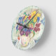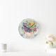 The original painting was crafted on traditional Washi paper (和紙) and adorned with shimmering gold leaf (金箔 - Kin-paku), scattered like stardust to create a magical, luminous quality. This stunning art is expertly reproduced on the face of a modern, round wall clock. The vibrant colors and intricate details are captured with exceptional clarity, and the clock's sleek design contrasts beautifully with the timeless, whimsical art, creating a unique and captivating focal point for any room.