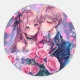 Det grå animeringsparet omgivet av rosa ros och hjärtan. Cute Valentine Day-klistermärken för paret som animeras i kärlek!