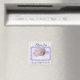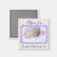 Bekvämt baby keepsakmagnet är perfekt till behålla på kylskåpet. Eller en underbar keepsaké-gåva till morföräldrar. Med lavender och mint rand, ett lacy lavender-foto ram med en båge för ditt eget ädla baby-foto och en söt liten söt baby-pea som pissar ur sin snäcka. Anpassadets text. Behållare, mugg och muspekare, tillkännagivande för födelse och postage frimärke finns också tillgängliga. PinkInkArt-original!