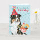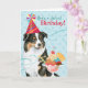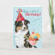 Grattis på födelsedagen hälsning med denna söta design med ett leende, party hatt-bärande Australian shepherd med en glasssundae. Det går lätt att ändra texten. Klicka bara på knappen Anpassa.