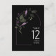 Fintliga blommigtar, subtila bågar och moderna serif typsnitt i en färg palett med lilak, mauve och mjuk grönt, kombineras med svart och vit bakgrund till ge delar i elegant bröllop med en moody, romantisk ambition. Kortet "Bordsnummer" i bröllop som visas här innehåller allt ovanstående plus en mall för att enkelt lägga till ditt eget namn, bröllop-datum och bordsnummer. Sök i ID998 för att se den fullständiga samlingen.