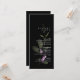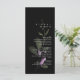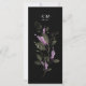 Fintliga blommigtar, subtila bågar och moderna serif typsnitt i en färg palett med lilak, mauve och mjuk grönt, kombineras med svart och vit bakgrund till ge delar i elegant bröllop med en moody, romantisk ambition. Det smala menykortet som visas här innehåller en mall som gör att du enkelt kan lägga till egna menyval. Sök i ID998 för att se den fullständiga samlingen.