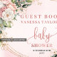 Celebrate love, joy, and sweet new beginnings with this romantic floral guest book, thoughtfully designed to capture heartfelt messages from friends and family. Featuring a soft palette of blush pink, dusty rose gold accents, and delicate flowers with eucalyptus greenery, this guest book brings timeless elegance and warmth to your special celebration.
