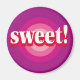 En rosa och lila tjurar-öga med ord "Sweet" i mitten är designen på denna magnet.