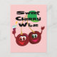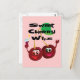 Två leende körsbär på stjälkar, en som håller ett glas och en rubrik Sweet Chery Vin på plattor, t-shirts, nyckelringar, knappar och fler vin-gåvor från roligt.