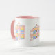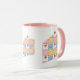 Tillfredsställ din söta tand med den här färgstarka mönster med smakfulla smak som en chokladglass, en lila frostiserad chokladdräkt, en citrongul gult makaron och en rosa och vit snurrande glapp åtskild av choklad chip och omgiven av regnbågssprinkler på fyra briggt huggna fyrkanter. Ett segment av kakor maskerar det upprepade mönster för att skapa en söt bild av roligten för dina söta krämer. Mugg finns i en rad olika färg, storlekar och stilar, inklusive resemuggar och stutar. Anpassa monogrammet på mugg med ditt första märke för att markera det som ditt eget.