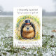 Happy Groundhog day greeting card with a sweet watercolor illustration of a groundhog in his top hat looking for his shadow. Will it be There is a Spring or Winter, whimsical groundhog day poem on the front and a sweet message inside.