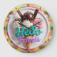Den här cirkelformade väggklockan har en härlig glasskon som är överfull med fyra skopor glass. Varje skop fylls med sprinkler och chokladplattor. Uttrycket "Hej Friends" visas på en framträdande plats i ett lekfullt, bubbelteckensnitt med "Hej" i blå grönt och "Friends" i lila. Ansikte har en färgstark, strimmig gräns i pastellskuggor som är inneslutna i ett gyllene ram.