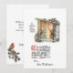 Söt vintage helgdag-vinjetten med en stöt som genomsöktes vid en glödande mysigt, öppen fönsterledd som är täckt av snö, omgiven av holly med en hjärtlig julventil i hälsning. Baksidan har kompletterande grafik och redigerbar fält.