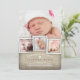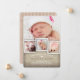 Avslappnad och elegant rustik, den här beige-bakgrunden och snyggt-typografin är scenen för ett vackert land-födelsemeddelande för din nyfödd bebis-flicka. Med plats för en multifotokollage av ditt barn är det här kortet ett underbart sätt att presentera baby för familj och vänner. Koordinering av sammanbrott och rosa strimlade mönster på baksidan.