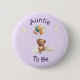A cute teddy bear hanging on to a bunch of colorful balloons flies through the clouds with a couple of stars overhead surrounded by the words "Auntie To Be." All text can easily be changed to your information.