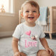 Spread a little buzz of love with this adorable design featuring a charming cartoon bee! Our sweet bee, with its pink stripes and rosy cheeks, gracefully floats while holding a vibrant pink heart balloon. Below, the word "Love" is beautifully rendered in a soft, fluffy pink texture, surrounded by tiny floating hearts. This design is perfect for a newborn, a toddler's birthday, a baby shower, or simply to share a loving message. It brings warmth and cuteness to any product, making it an ideal gift for anyone who cherishes sweet, heartfelt moments. A truly heartwarming design for your loved ones!