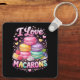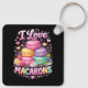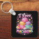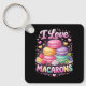 A colorful, whimsical illustration of stacked French macarons surrounded by fruit and hearts, celebrating joy, romance, and irresistible desserts.