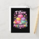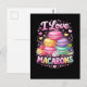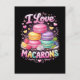 A colorful, whimsical illustration of stacked French macarons surrounded by fruit and hearts, celebrating joy, romance, and irresistible desserts.