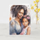 Ett vackert exempel på en afrikansk-amerikansk mamma med sin dotter med blommor i håret i en söt vattenfärgsaikkonst. Lycklig Mors dag-kort med personlig på insidan.