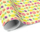Ljusa och färglösa godis och lollipop-mönstrad glansig presentförpackning.
