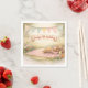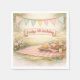 For a beautiful boho picnic birthday, here are some delightful paper napkins featuring soft florals, watercolors, bunting flags, a banner and a charming outdoor picnic with gingham checked blanket and wicker basket —perfect for a sweet celebration.
